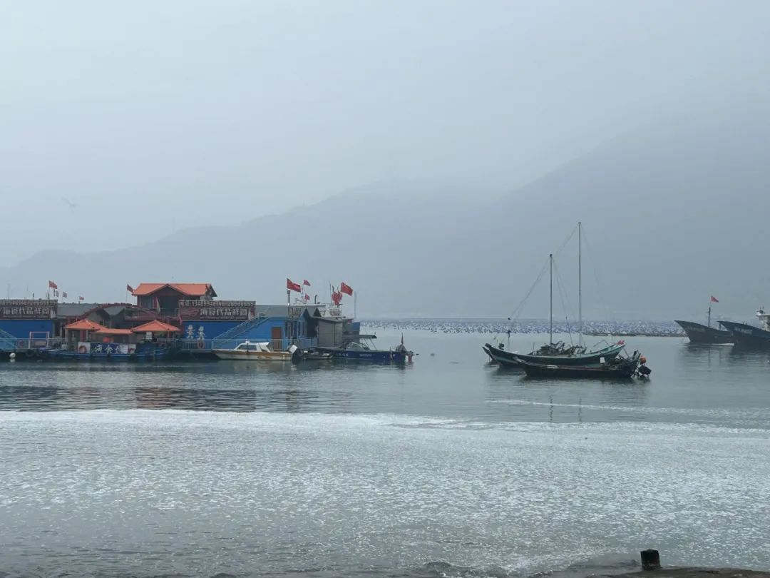 清晨,遼闊的海面伴隨著清涼的海風(fēng)和陣陣的小雨。考察團(tuán)一行共同來(lái)到了如山水油墨畫般的養(yǎng)殖海域。即使海面能見(jiàn)度不足,但也難掩大家的熱情。