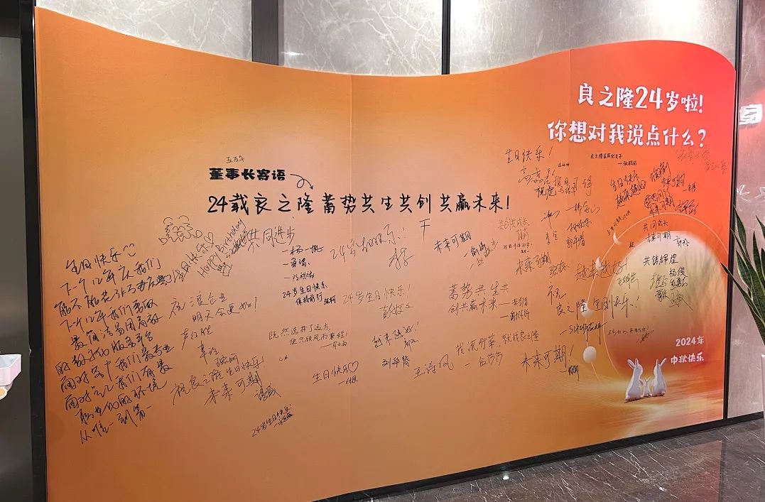 風(fēng)雨二十四載,啟行創(chuàng)未來。良之隆總部組織各部門小伙伴寫生日祝語、即時(shí)攝影等形式為公司24周歲獻(xiàn)上祝福,財(cái)務(wù)中心、經(jīng)管中心、加盟事業(yè)部、數(shù)字化中心等部門紛紛表達(dá)對(duì)公司的感恩和對(duì)未來發(fā)展的無限憧憬!